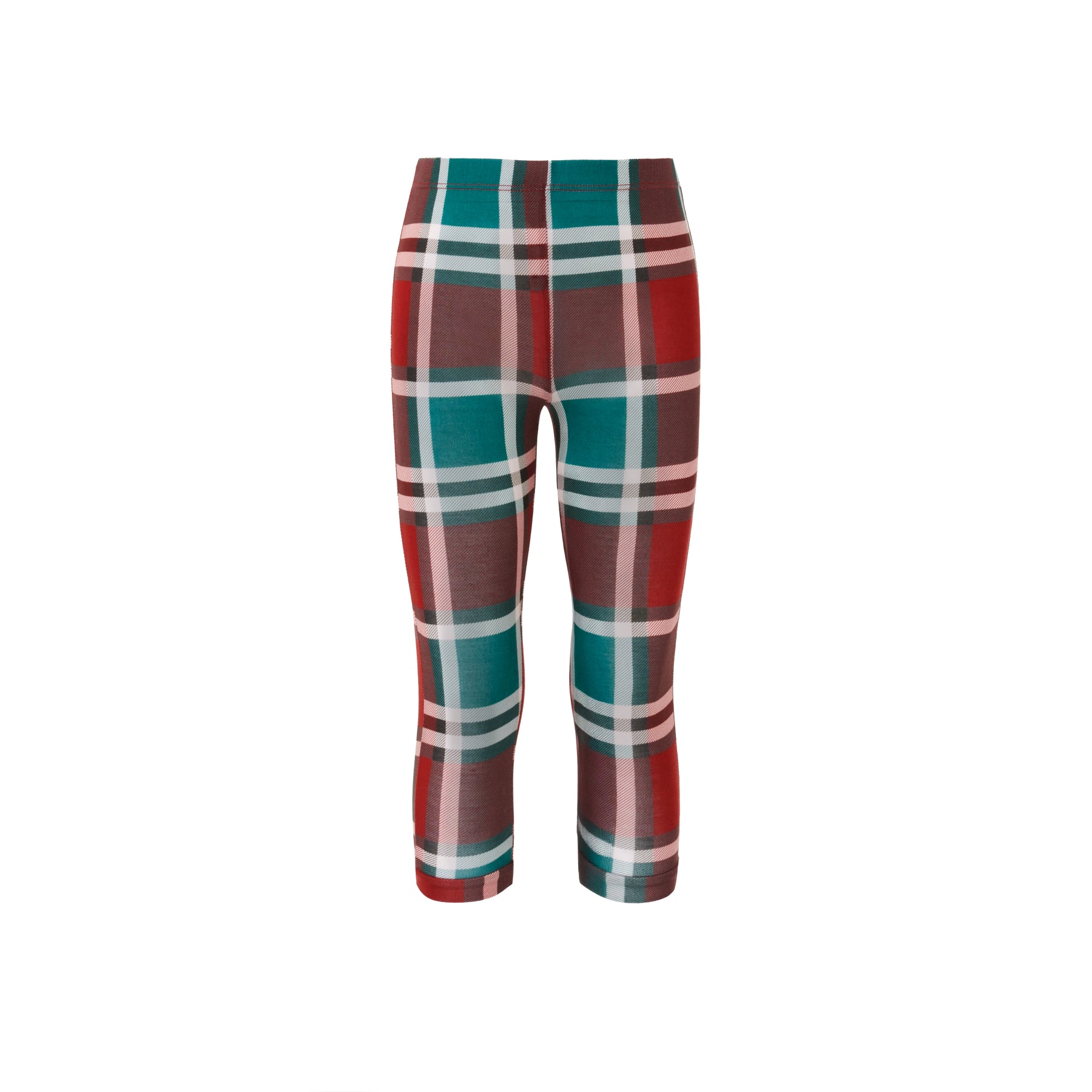 • Rich holiday plaid in deep red, evergreen, and snowy white accents